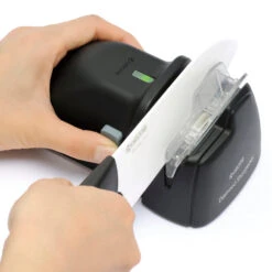 This versatile sharpener is safe for fine kitchen cutlery, and is recommended for chef’s knives, santoku knives, bread knives, hunting knives, fillet knives, and pocket knives. It can be used to sharpen both single-sided and double-sided edges.