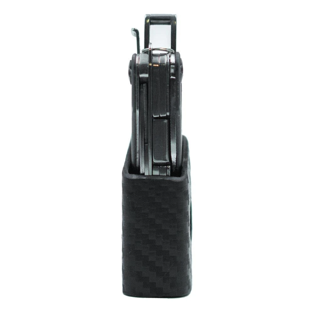 This Clip & Carry Kydex Sheath is designed to fit the Leatherman Squirt or the Gerber Dime. It is proudly constructed in the USA from a durable kydex material, and can be adjusted to your preferences.