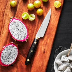 Engraving: Up to 8 characters can be laser engraved on the Kramer 5″ Carbon Steel Utility Knife by Zwilling.