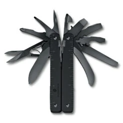 The updated Leatherman Black Oxide Surge is a multi-tool powerhouse-built with tough pliers, longer blades and easy-to-use locks. A unique blade exchanger comes with saw and diamond/wood file blades. Large and small bit drivers include double-ended bits. And 4 outside-opening blades give you quick access to the tools you use most. With these new features, plus Leatherman’s strongest spring-loaded scissors yet, Surge is sure to make a splash at the work site.